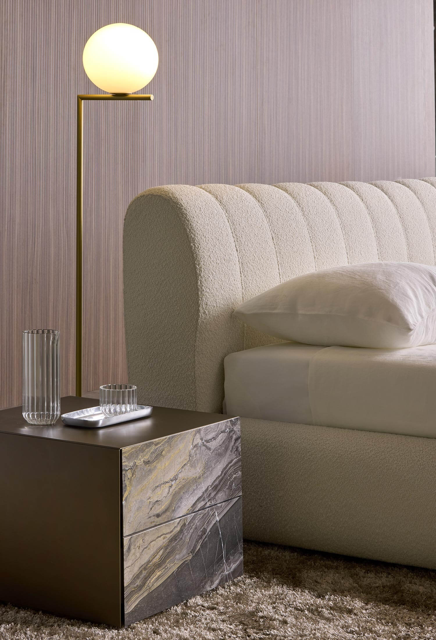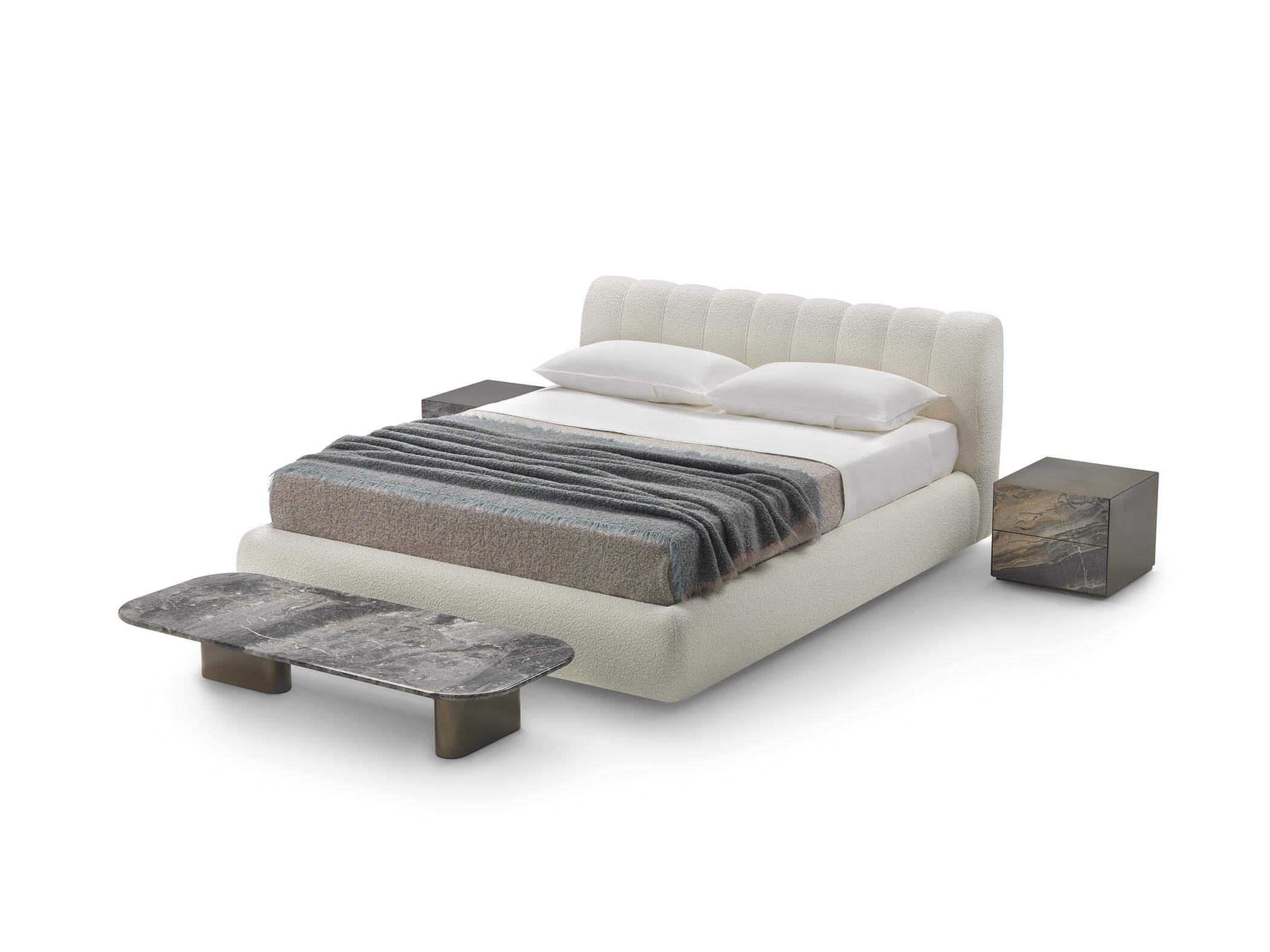 Il letto Milo è un omaggio alla morbidezza delle forme, ispirato alle linee sinuose e avvolgenti dell’omonimo divano. Il suo design organico dona eleganza e armonia alla zona notte, trasformandola in un rifugio di comfort e sofisticata accoglienza.