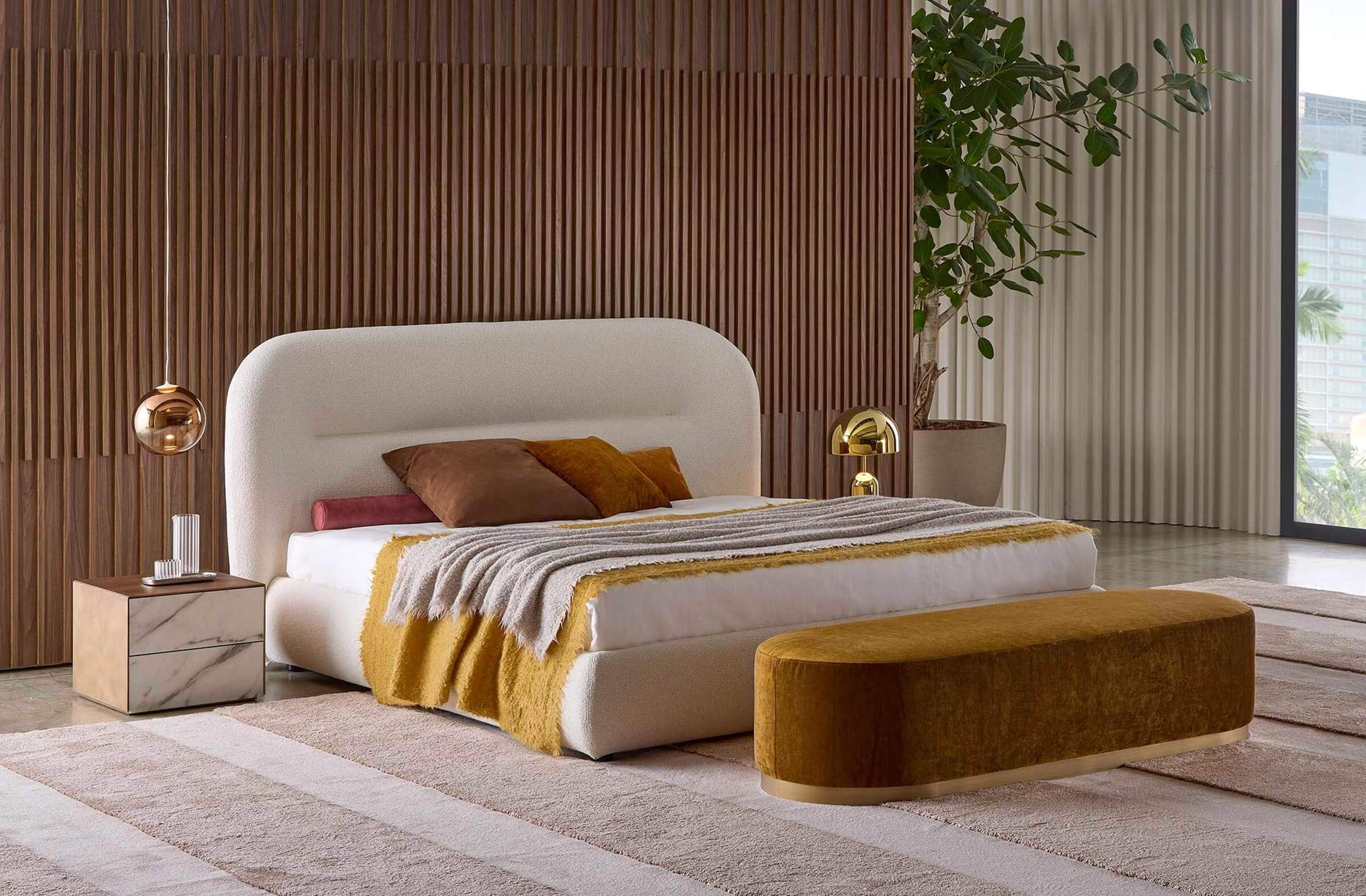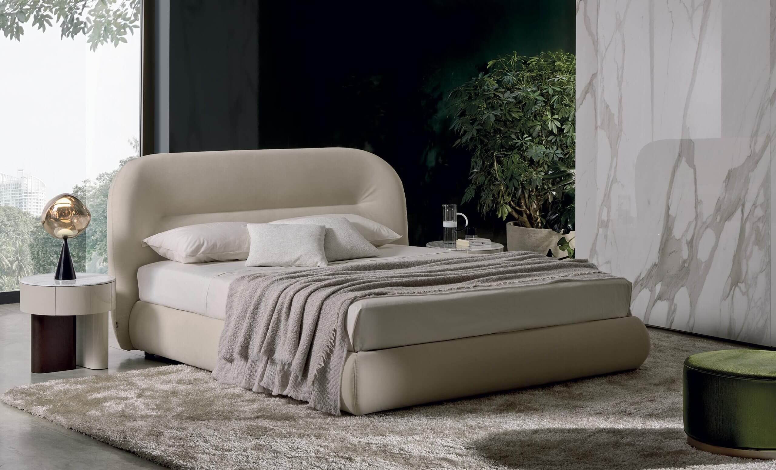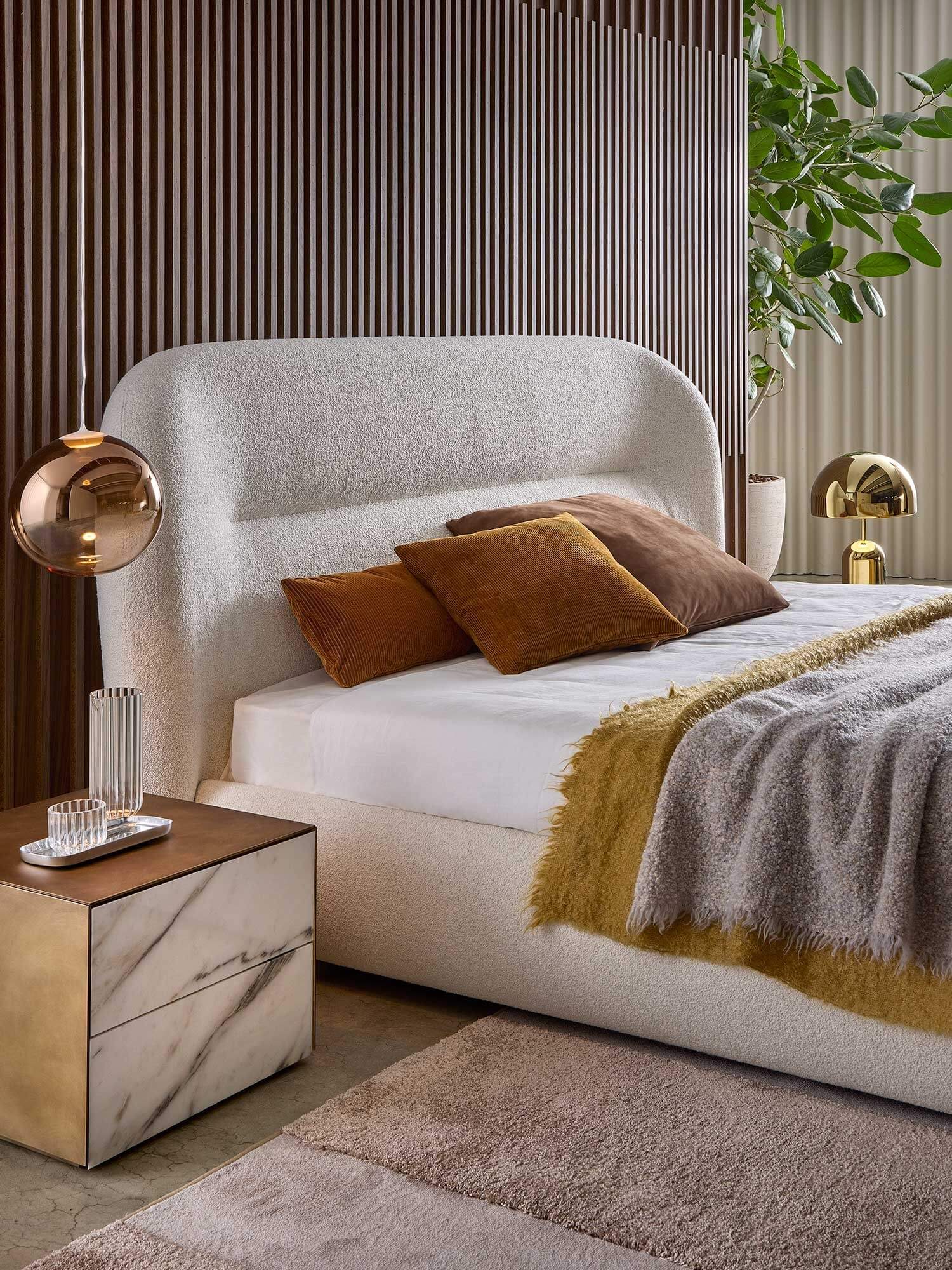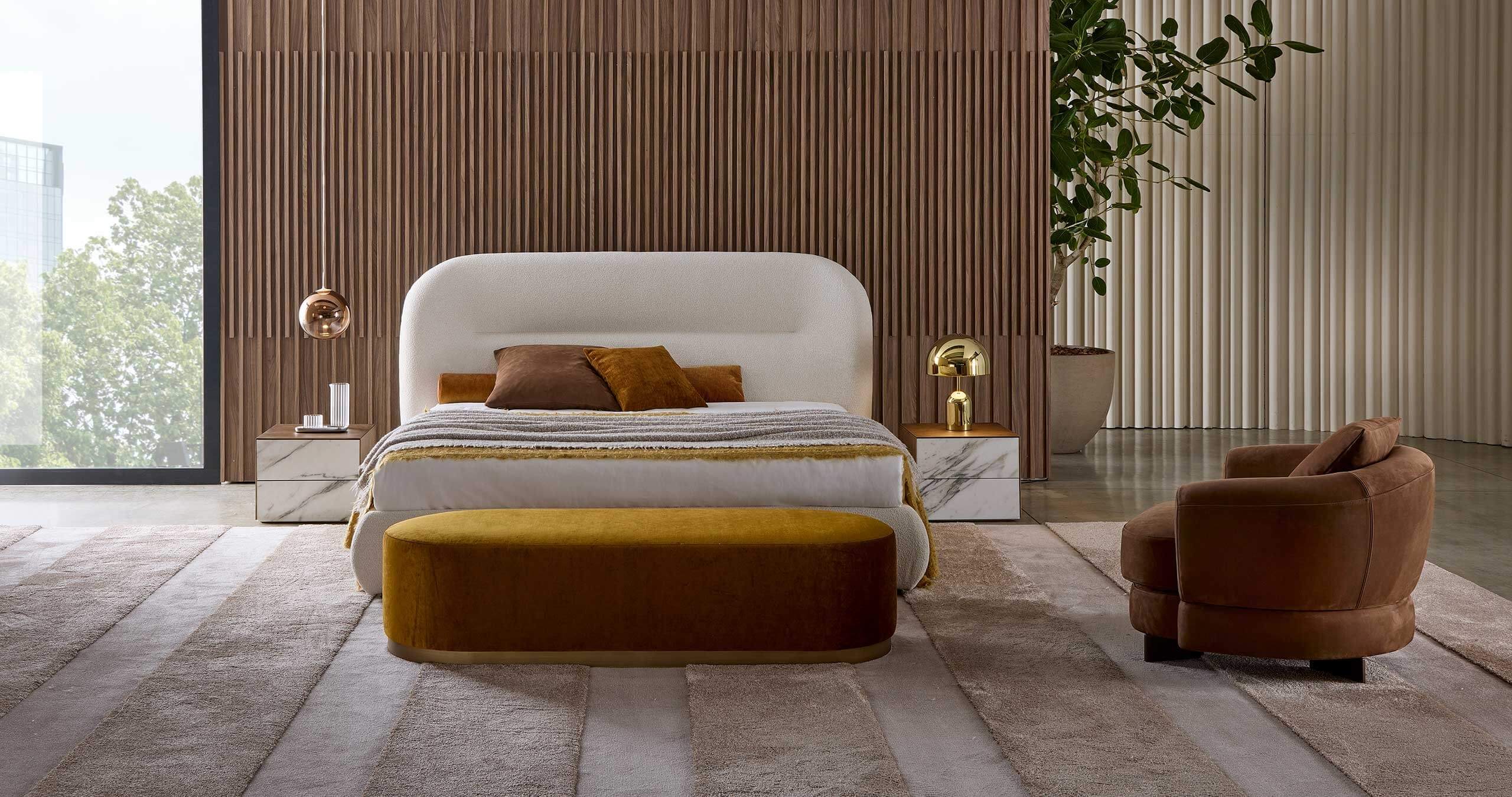 Il letto Noah è stato ispirato dalle linee curve, sinuose e avvolgenti dello schienale del divano omonimo, creando un design che richiama il fascino organico degli anni Settanta. Questo letto trasforma qualsiasi spazio in un ambiente caldo e familiare, offrendo una piacevole sensazione di comfort domestico. Le sue linee distintive conferiscono alla testata una forte personalità, rendendolo adatto non solo per ambienti residenziali, ma anche per utilizzi contract, come hotel di lusso, offrendo agli ospiti un’esperienza di sonno e riposo di alta qualità.