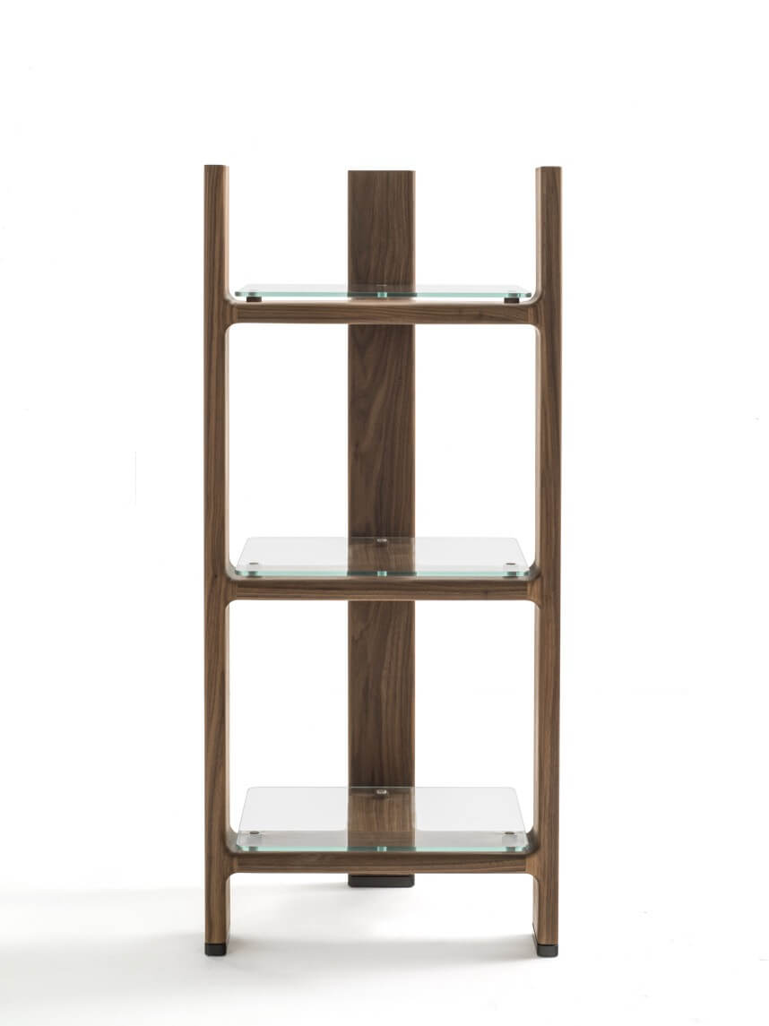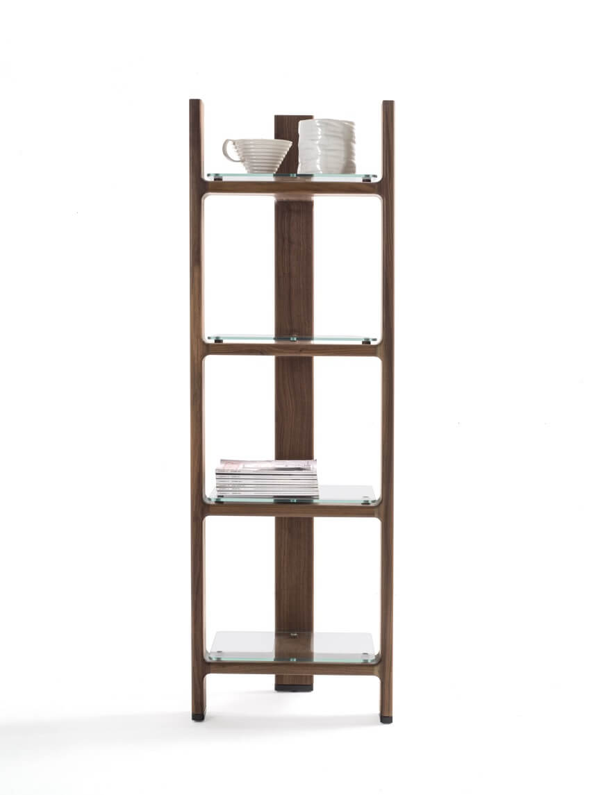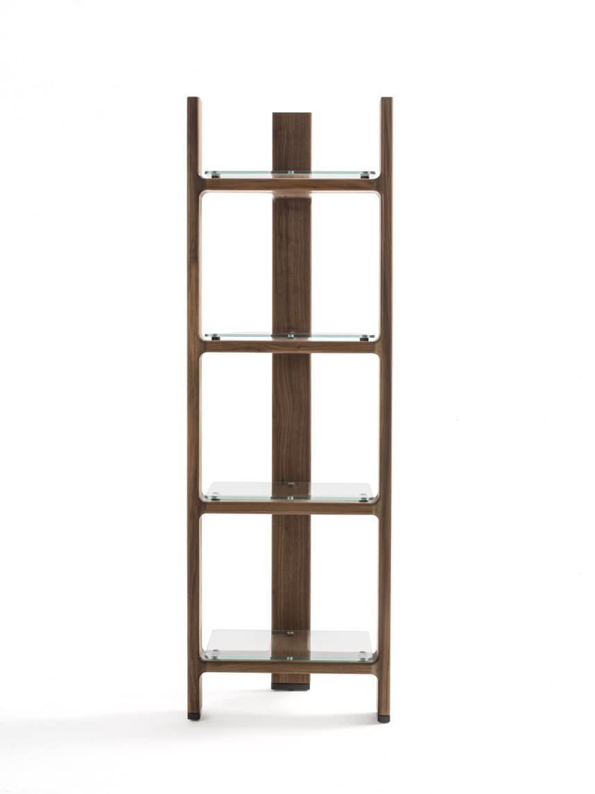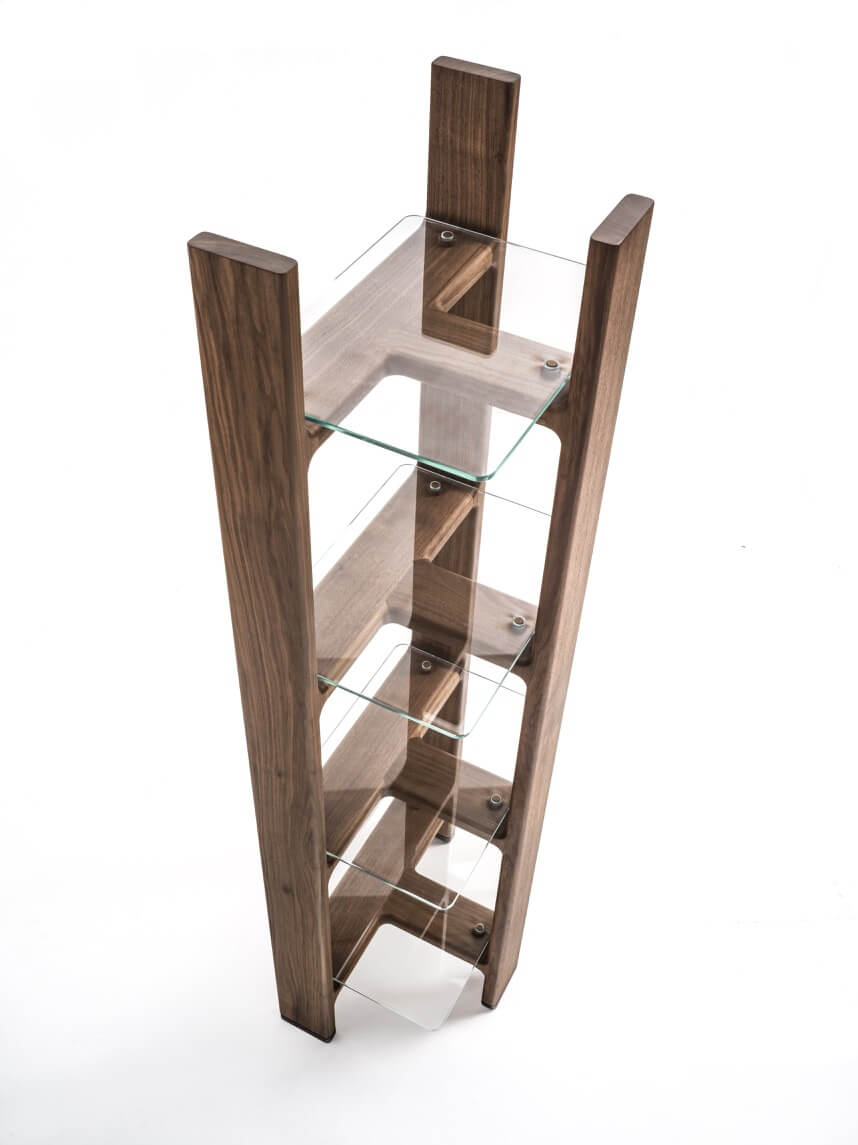 Intervallata da piani orizzontali in cristallo, che creano un’apparente semplicità formale, tutta la collezione esprime uno spiccato carattere e raffinata eleganza che gli permette di trovare una facile collocazione in spazi domestici come anche in importanti spazi collettivi.