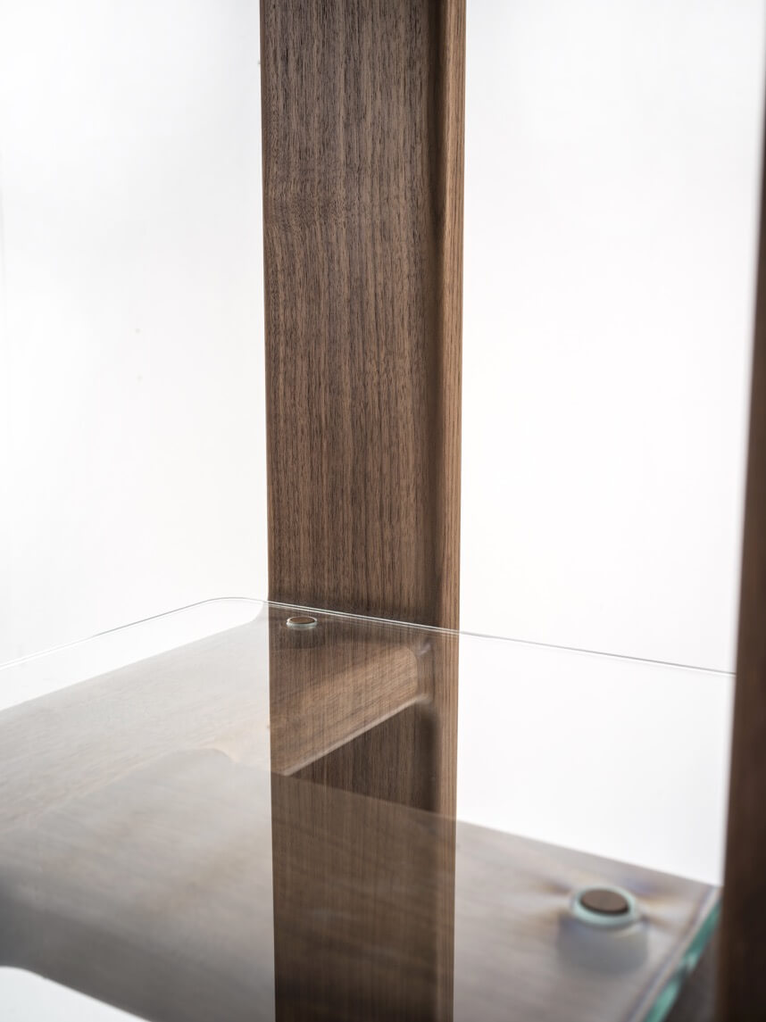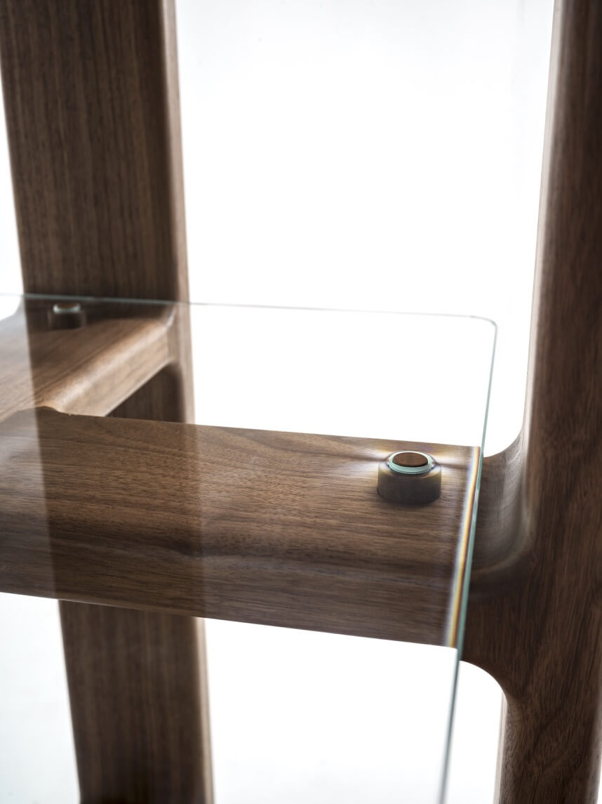 Una sezione molto importante caratterizzata da incastri eseguiti secondo una tradizione ebanista, restituisce una poetica matericità e plasticità ad un materiale caldo e nobile come il legno.