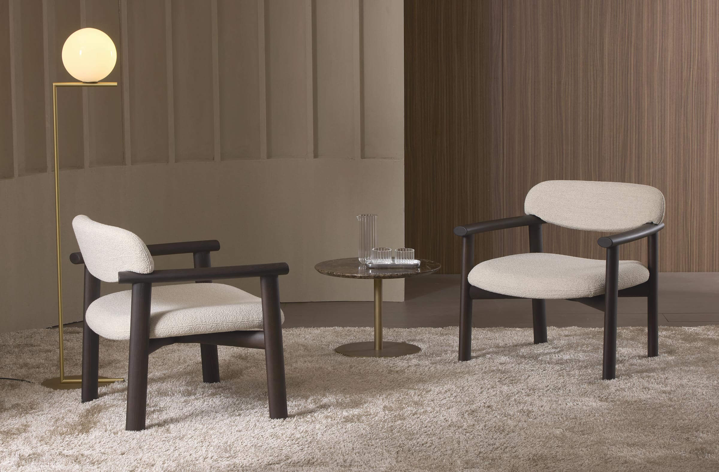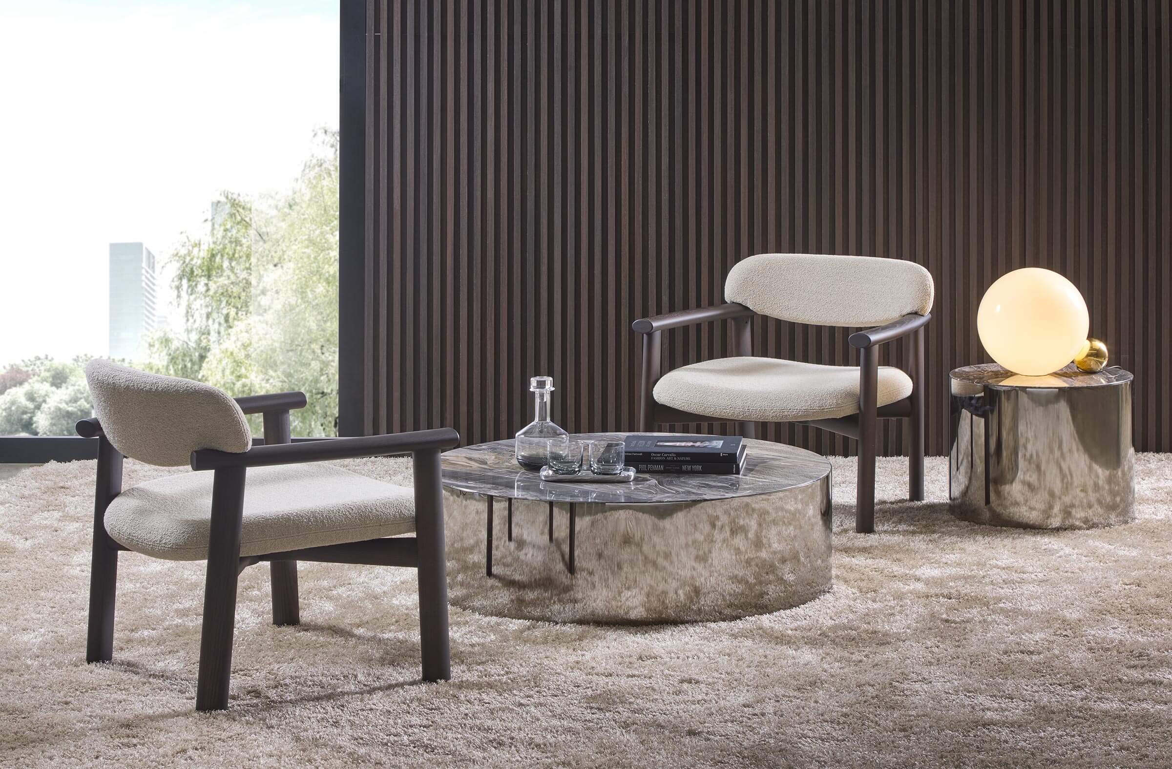 Un perfetto equilibrio tra minimalismo e funzionalità sofisticata, la collezione Afra comprende una sedia e una poltrona, entrambe caratterizzate da un’estetica essenziale e da un comfort senza compromessi. Con una struttura in legno dalle linee pulite e decise, questa famiglia di sedute si ispira all’eleganza dello stile giapponese, esaltando la purezza delle forme e la leggerezza visiva.