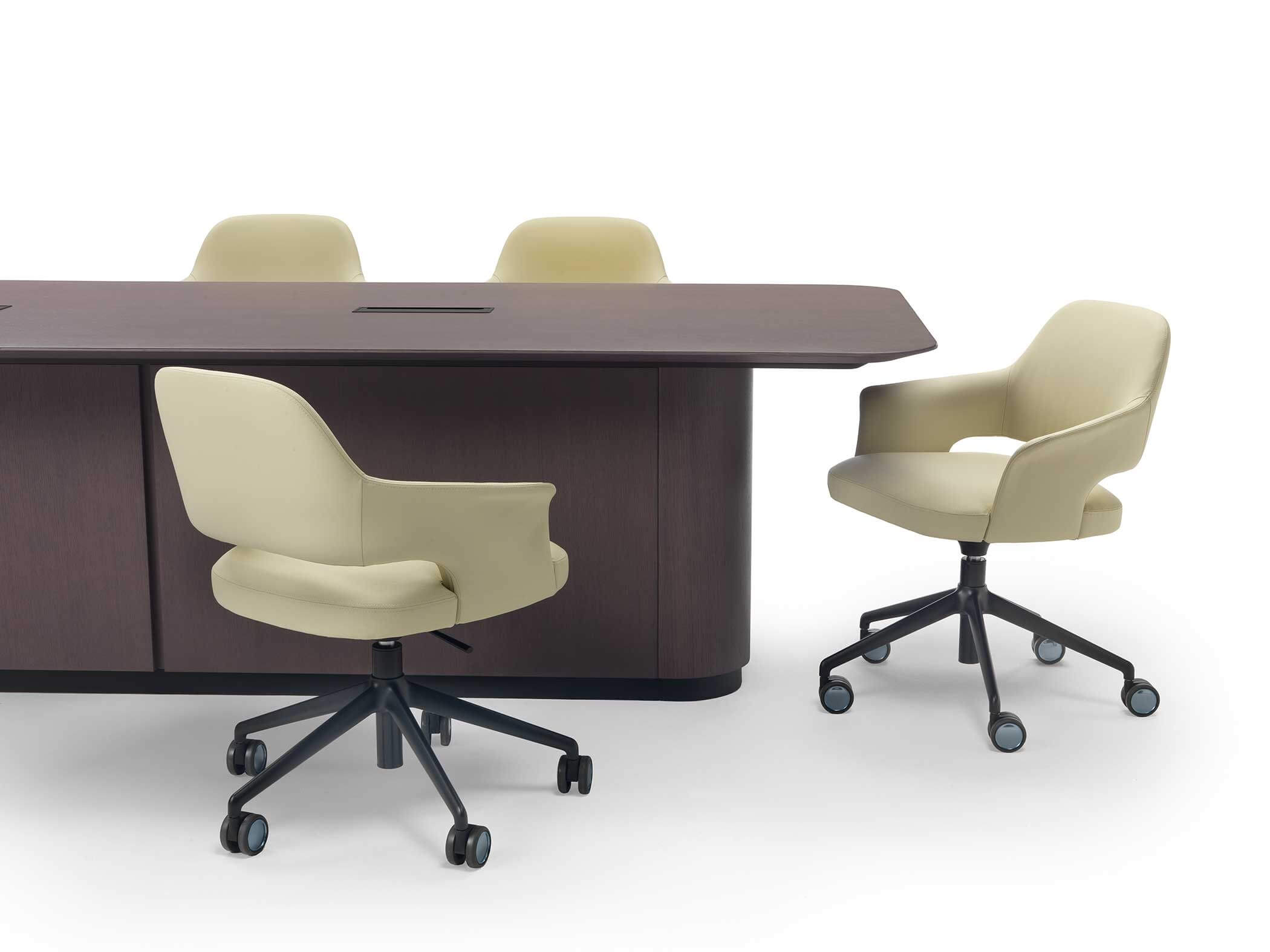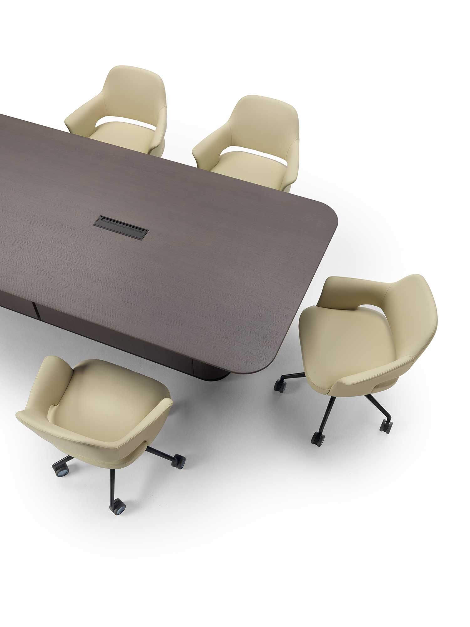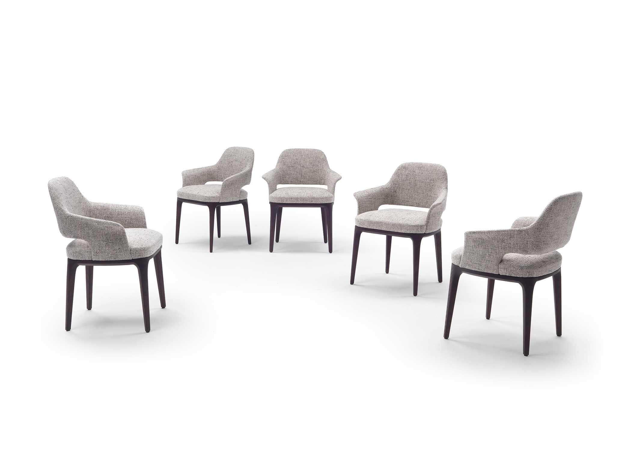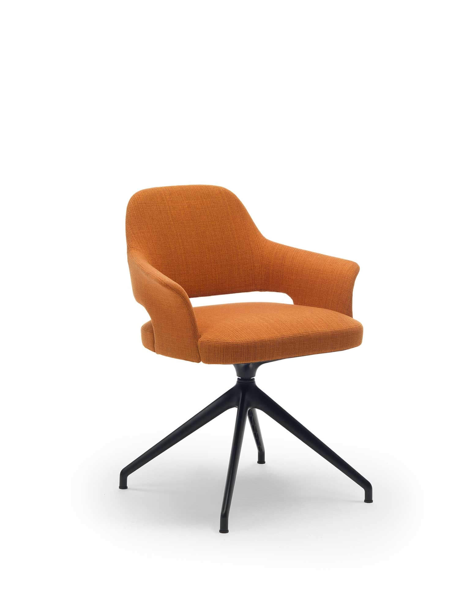 Amy si distingue per la scelta di tre diverse basi, pensate per soddisfare le esigenze sia del mercato residenziale che di quello contract. Optate per la classicità delle quattro gambe in legno per un tocco accogliente, o scegliete la versione rotante in metallo per un living contemporaneo. Per gli ambienti contract, la variante con rotelle offre praticità e stile senza compromessi.