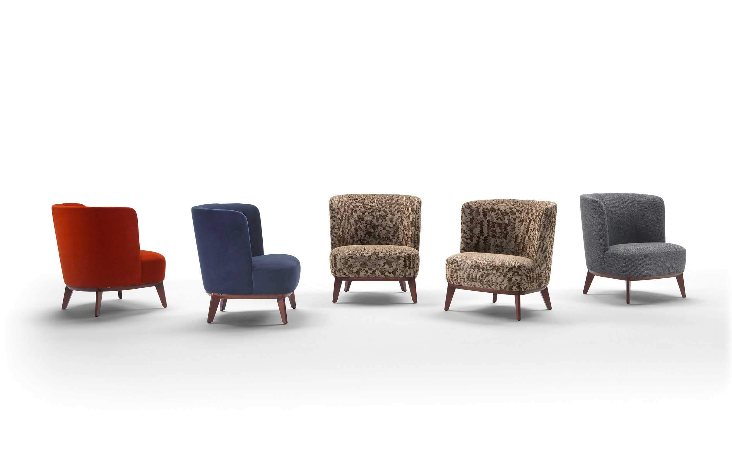 Derek è una famiglia di poltrone e divanetti caratterizzata da linee morbide, semplici e fresche. Questi mobili hanno un look pulito e sono personalizzabili con una base in metallo o legno, a seconda delle preferenze. La vasta scelta di tessuti, pelli e finte pelli consente di adattarli a diversi progetti e ambienti.