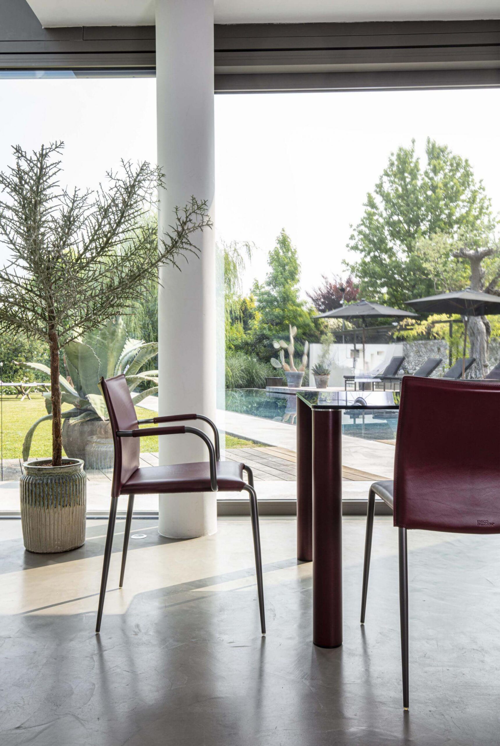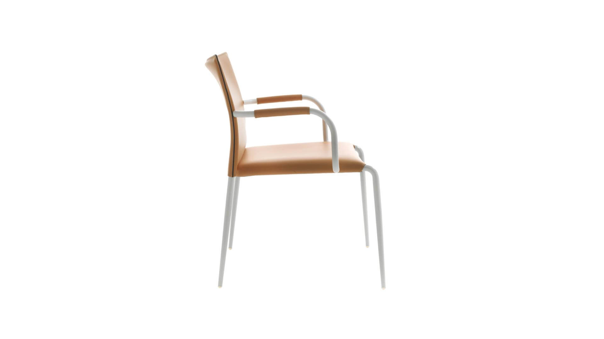 Struttura in tubolare di ferro, diam. 22 mm conificato. Fondo in lamiera rivestito in tessuto tecnico col. nero. Prodotto impilabile fino a un massimo di 4 pezzi (versione standard); fino a un massimo di 10 pezzi (versione contract). Tutta la collezione presenta linee semplici ed essenziali, sinonimo di grande eleganza, accompagnati da un’ampia gamma di finiture metalliche di tendenza. Adatta a tutti i contesti, dal residenziale ai luoghi pubblici.