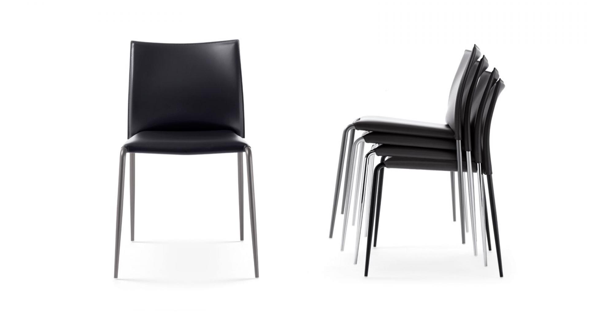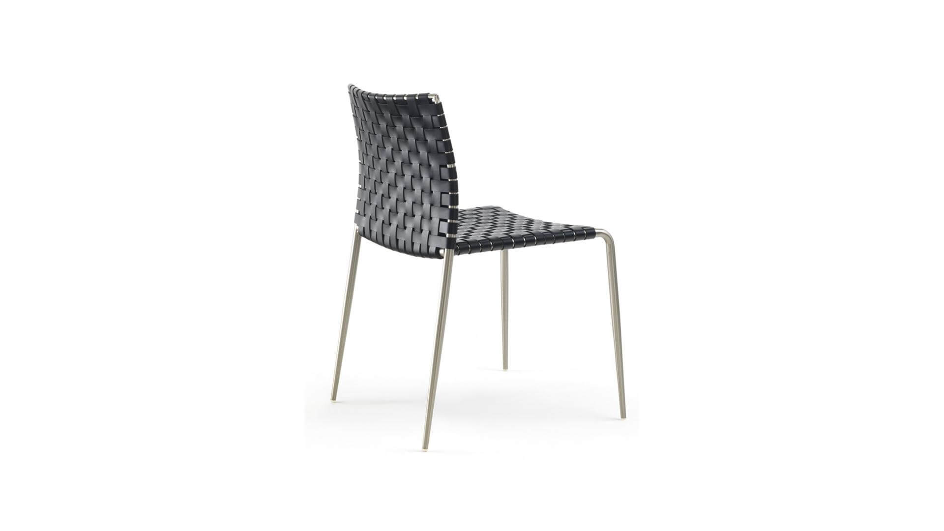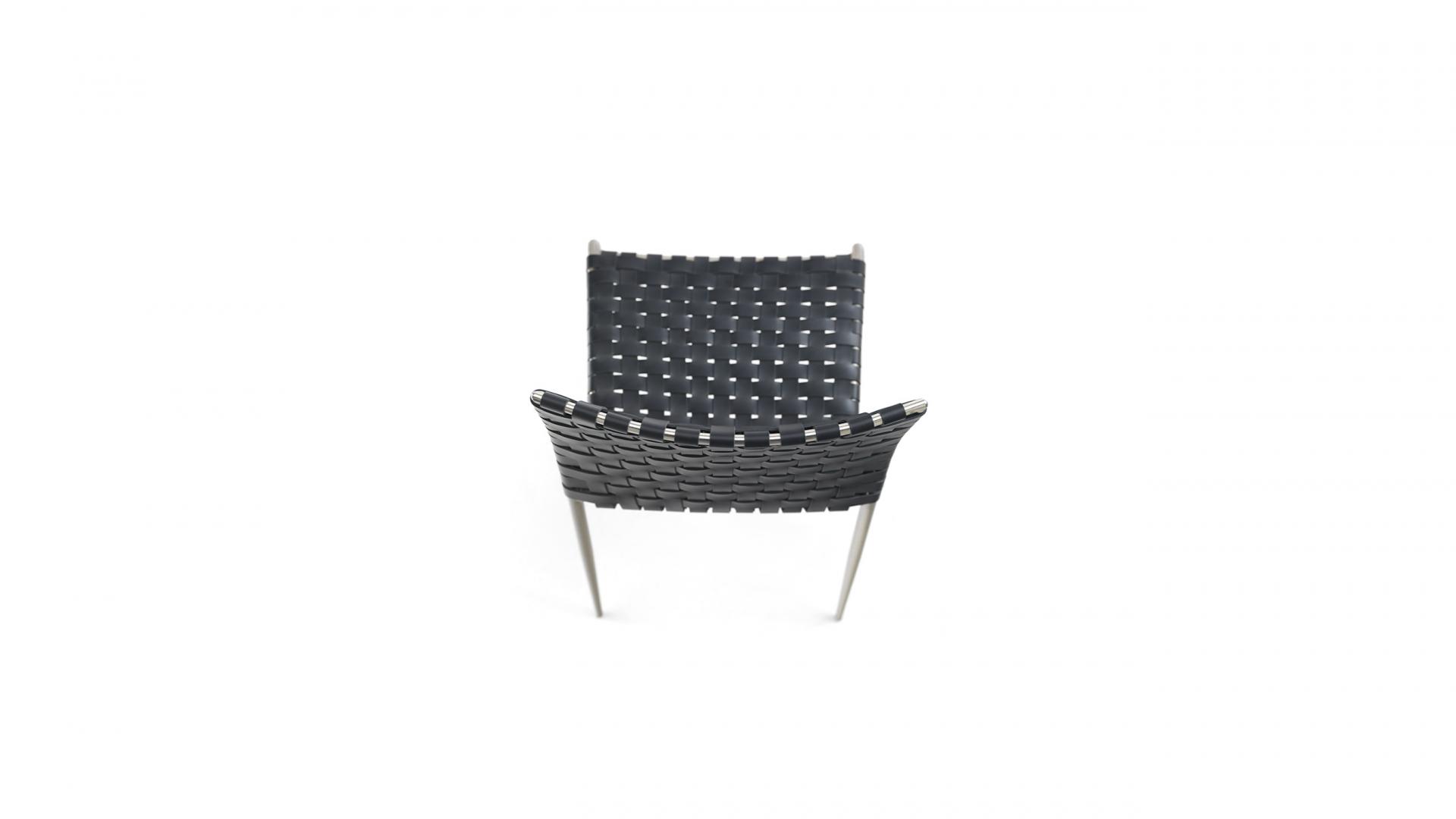 Struttura in tubolare di ferro, diam. 22 mm conificato. Fondo in lamiera rivestito in tessuto tecnico col. nero. Prodotto impilabile fino a un massimo di 4 pezzi (versione standard); fino a un massimo di 10 pezzi (versione contract).