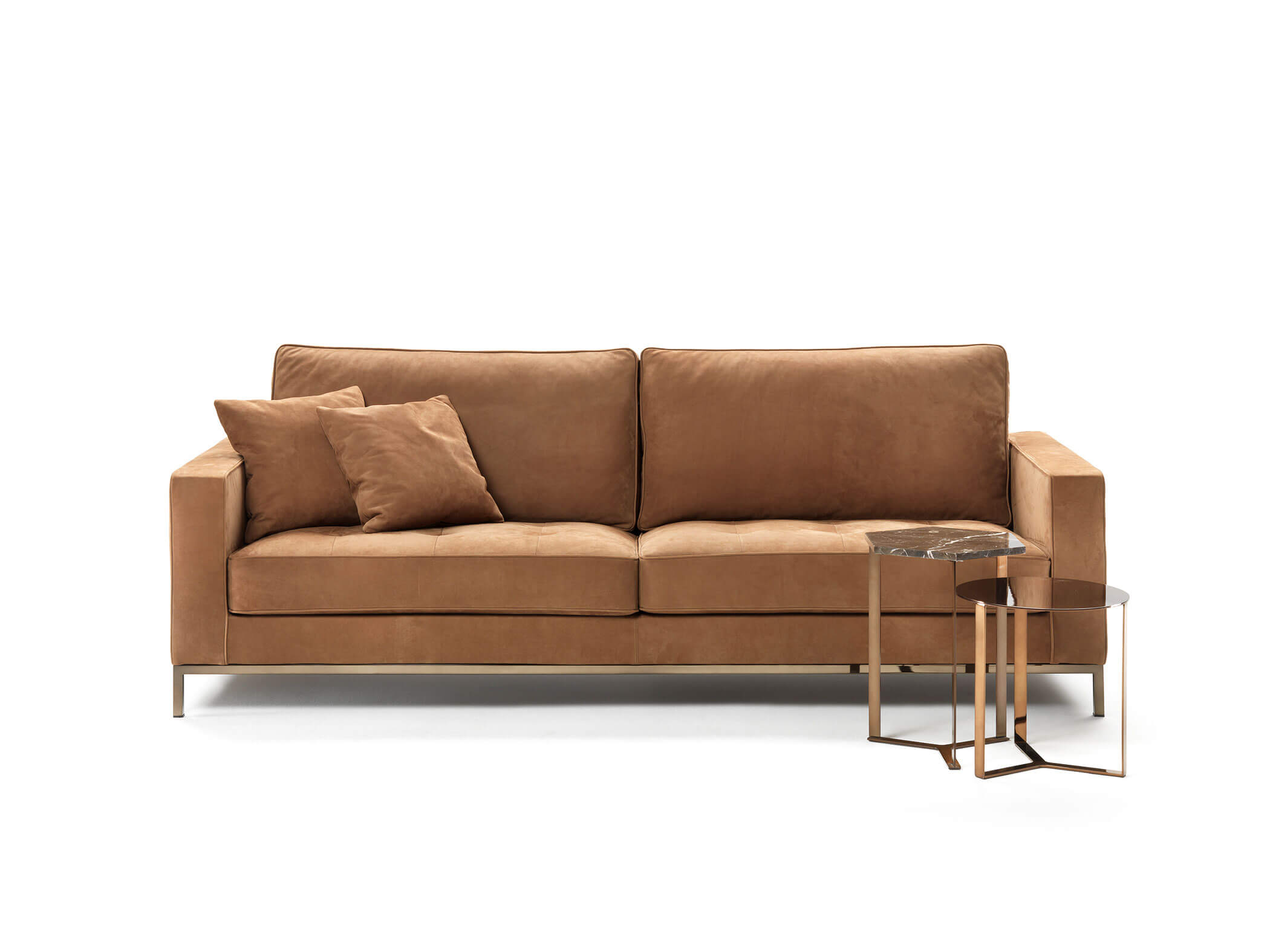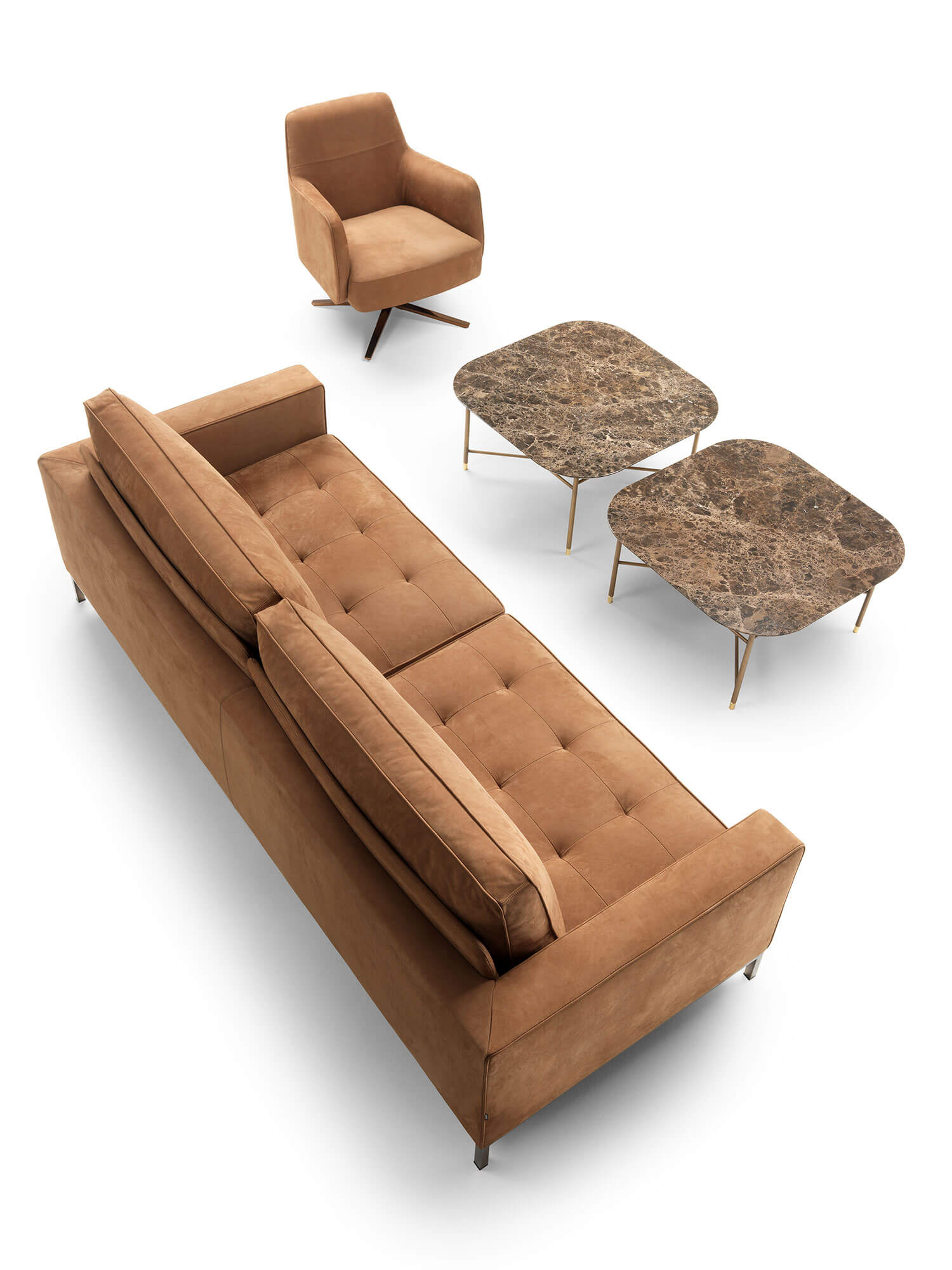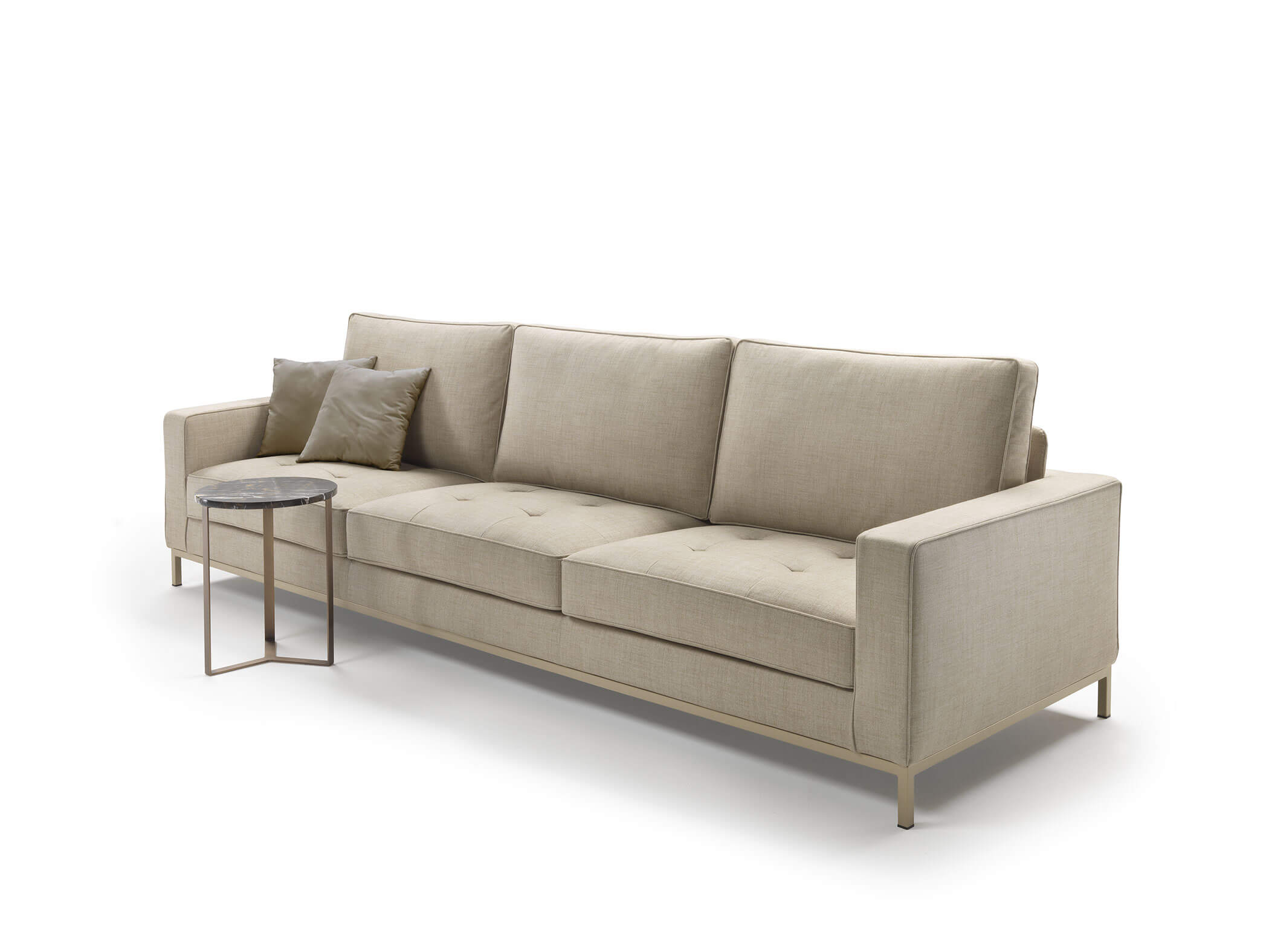 La famiglia Lancaster propone divani dal design ispirato allo stile internazionale, caratterizzato da linee rigorose e austere che conferiscono un aspetto contemporaneo e raffinato, esaltato dalla trapuntatura dei cuscini. Il comfort è notevole e garantisce una seduta comoda e piacevole sia alle poltrone che ai divani. Una base perimetrale a quattro gambe, disponibile in legno o metallo, valorizza ulteriormente il divano.