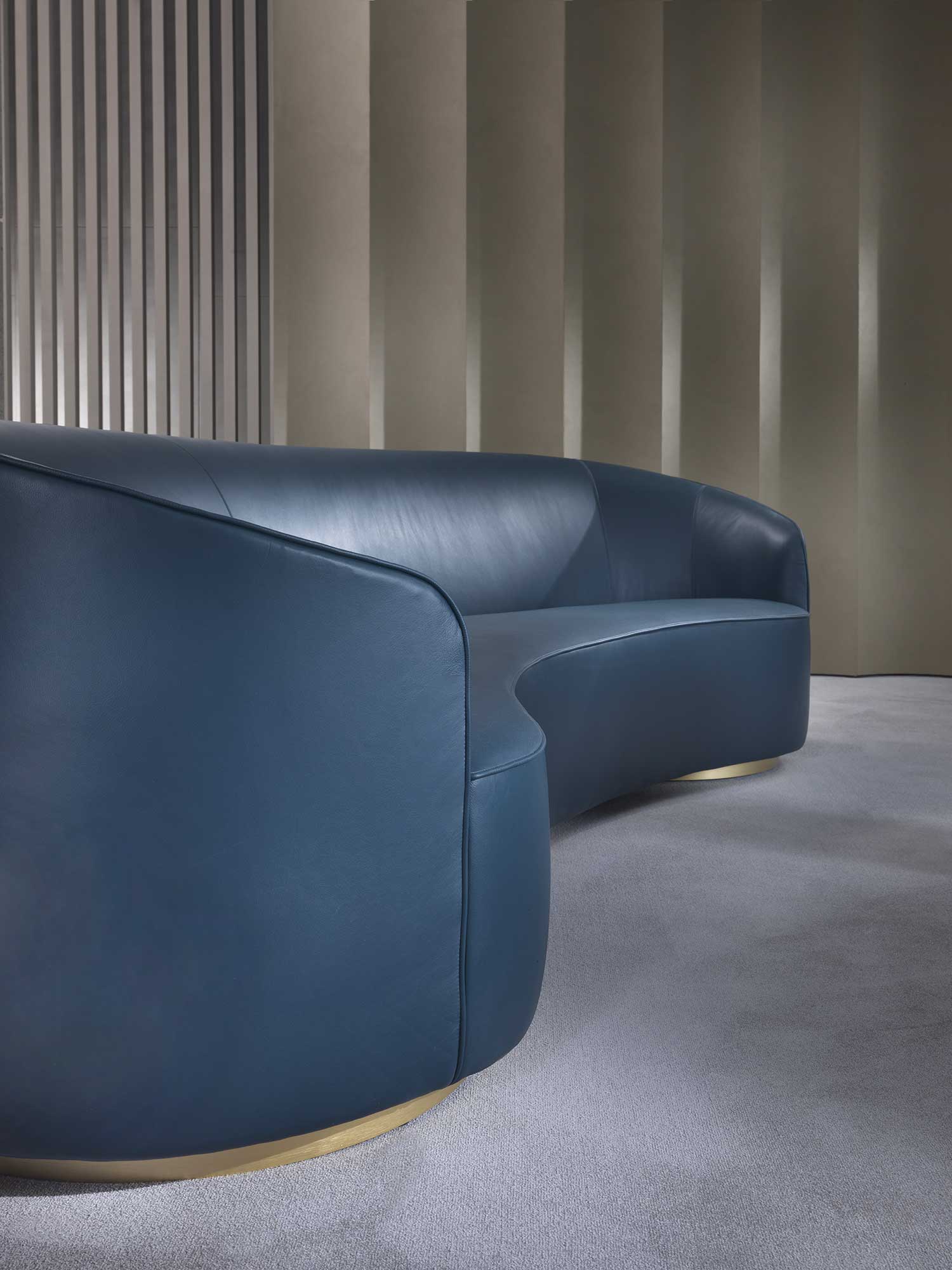 Un altro punto di forza della collezione Moon è la possibilità di personalizzazione. Grazie al nostro ufficio tecnico, i divani possono essere realizzati con lunghezze su misura per soddisfare le esigenze specifiche dei clienti. È possibile personalizzare il rivestimento scegliendo tra diversi materiali e finiture per le basi in metallo. Questa flessibilità consente di creare un prodotto unico e personalizzato per ogni ambiente, sia residenziale che contract.