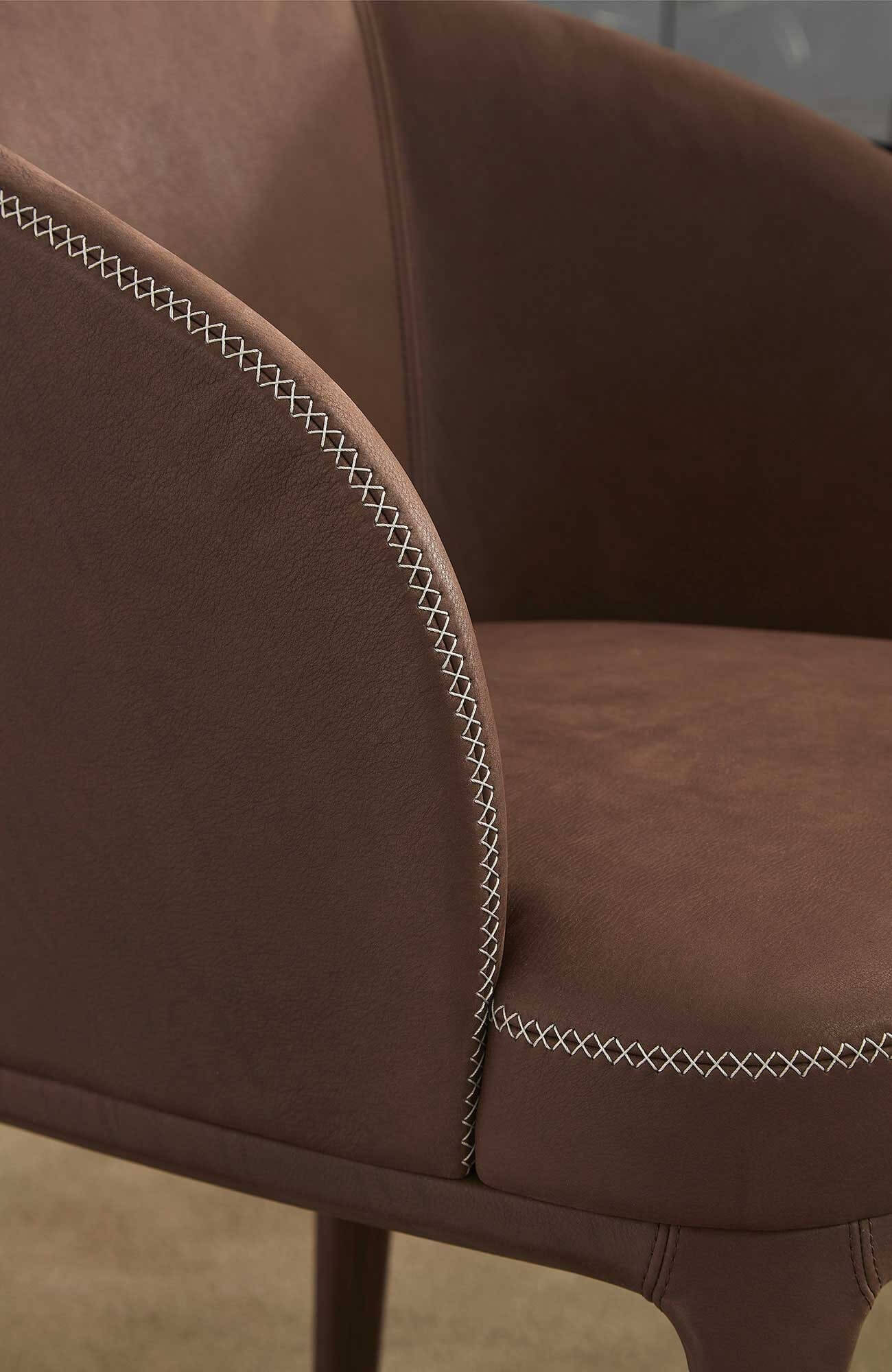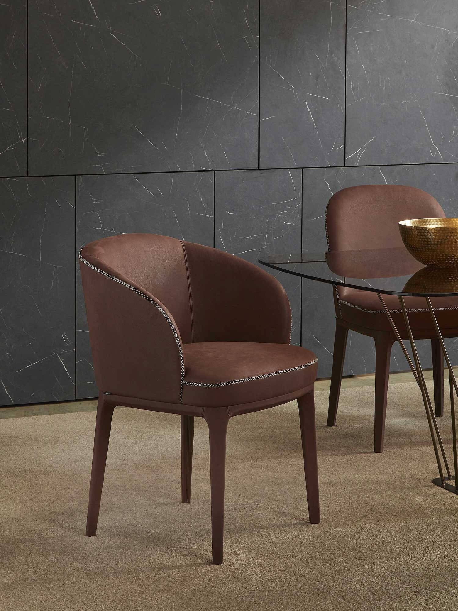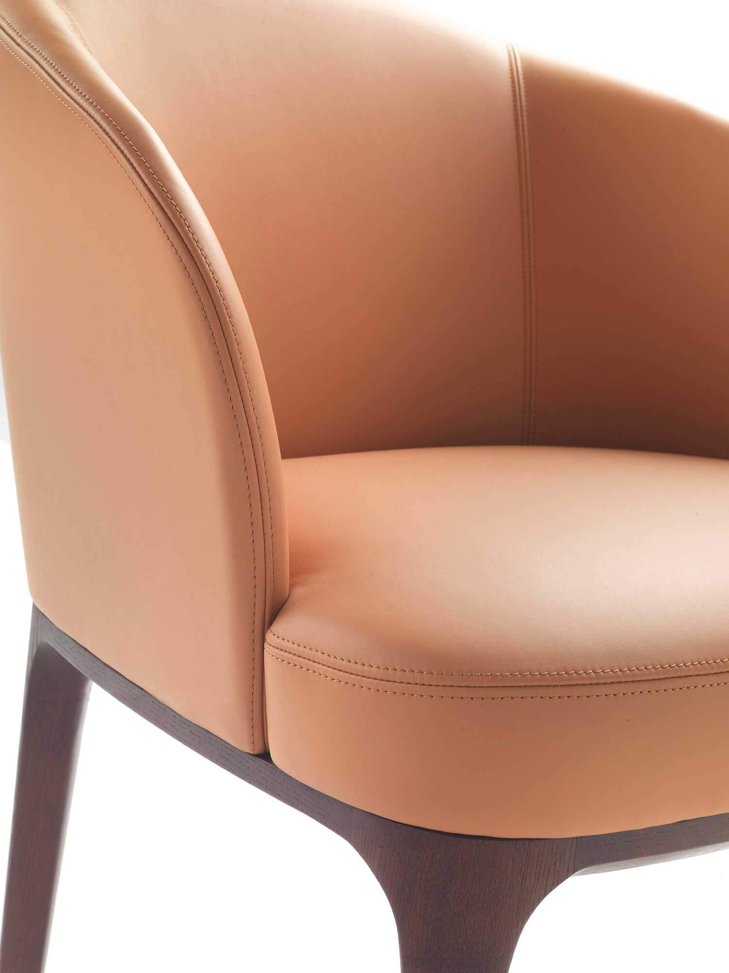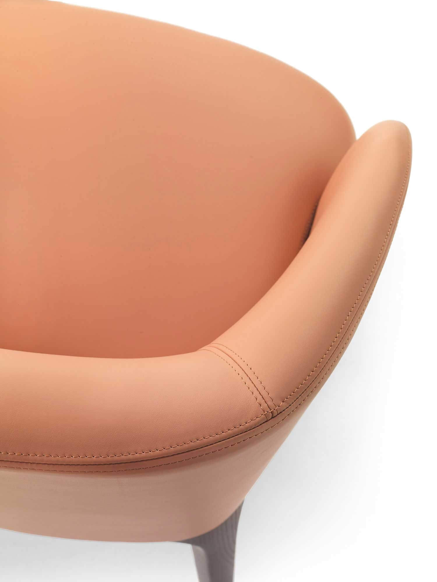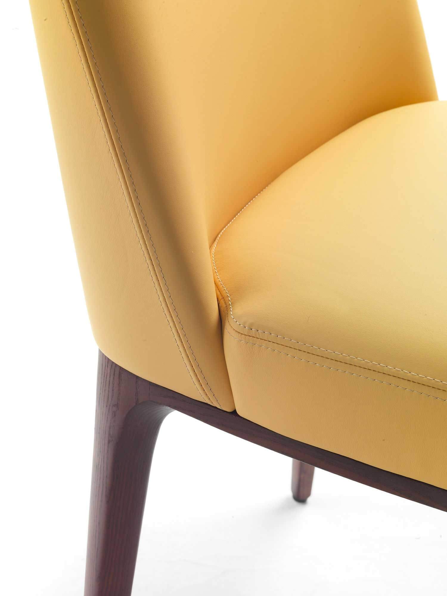 La base delle sedute è realizzata in legno, ma è possibile personalizzarla rivestendola con il materiale scelto per la parte imbottita. Un’opzione di personalizzazione ulteriore è quella di combinare due diversi materiali, ad esempio tessuto per la parte interna e pelle per la scocca esterna. Questo consente di adattare Paris a diversi stili e preferenze di arredamento.