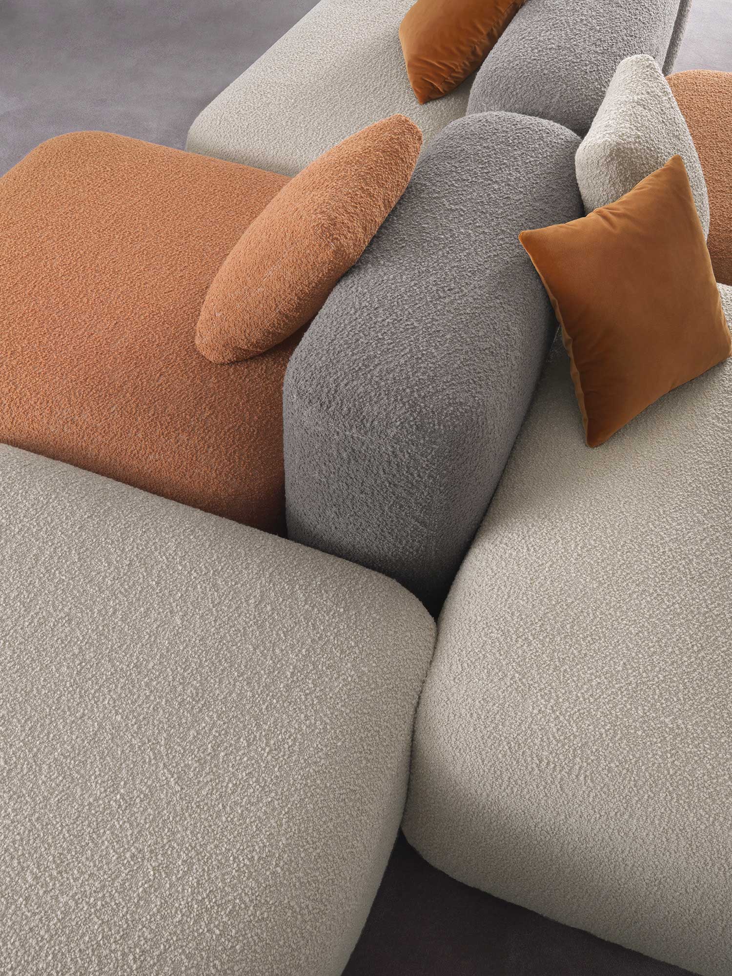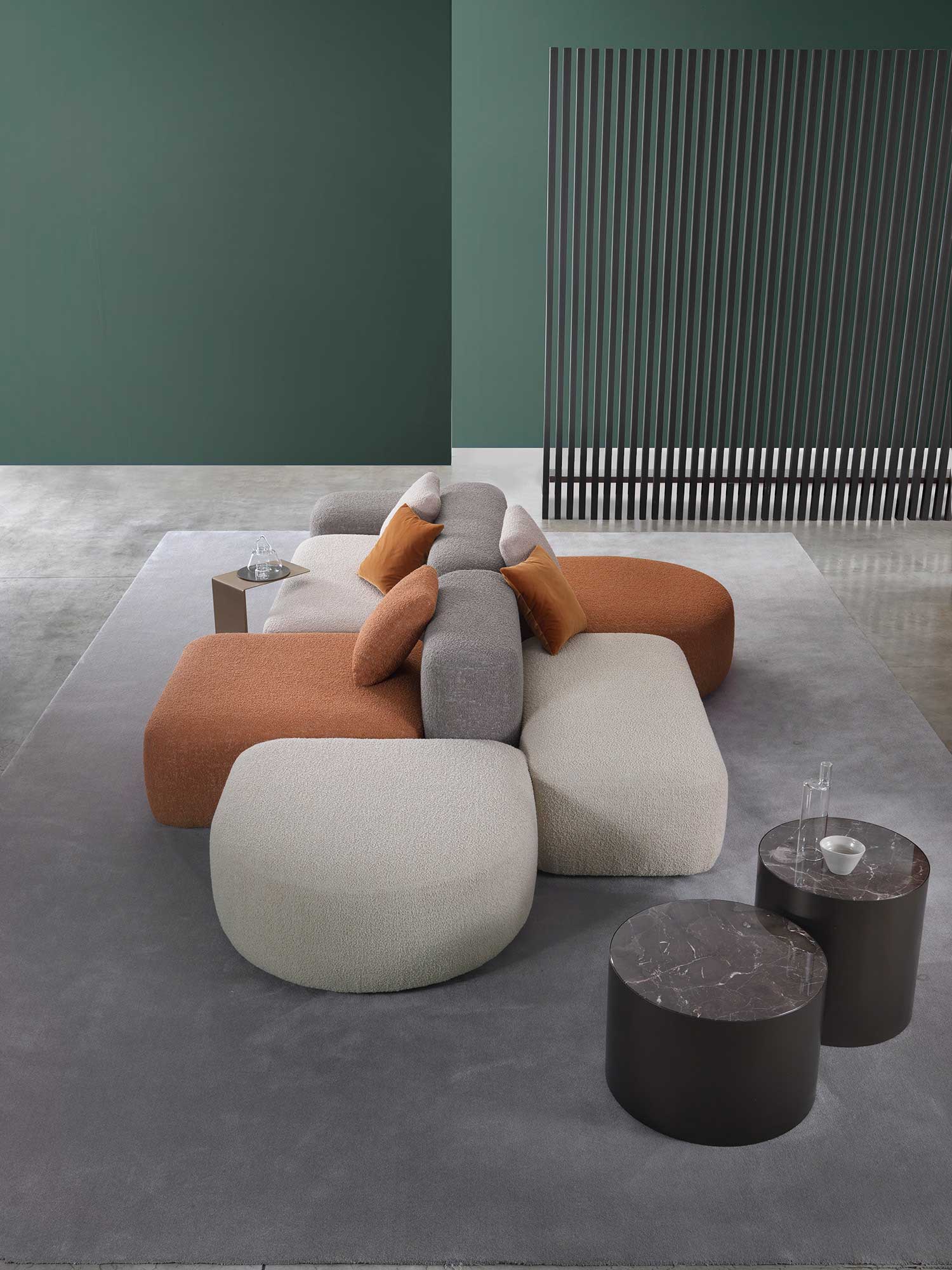 Grazie alla sua modularità, Sahara consente di creare configurazioni adatte a diversi scopi e spazi. Le sedute possono essere abbinate a schienali e braccioli, offrendo ulteriori opzioni di personalizzazione e supporto ergonomico. Ciò consente di utilizzare Sahara non solo come divano tradizionale, ma anche come area di lavoro collaborativa o zona relax informale.
