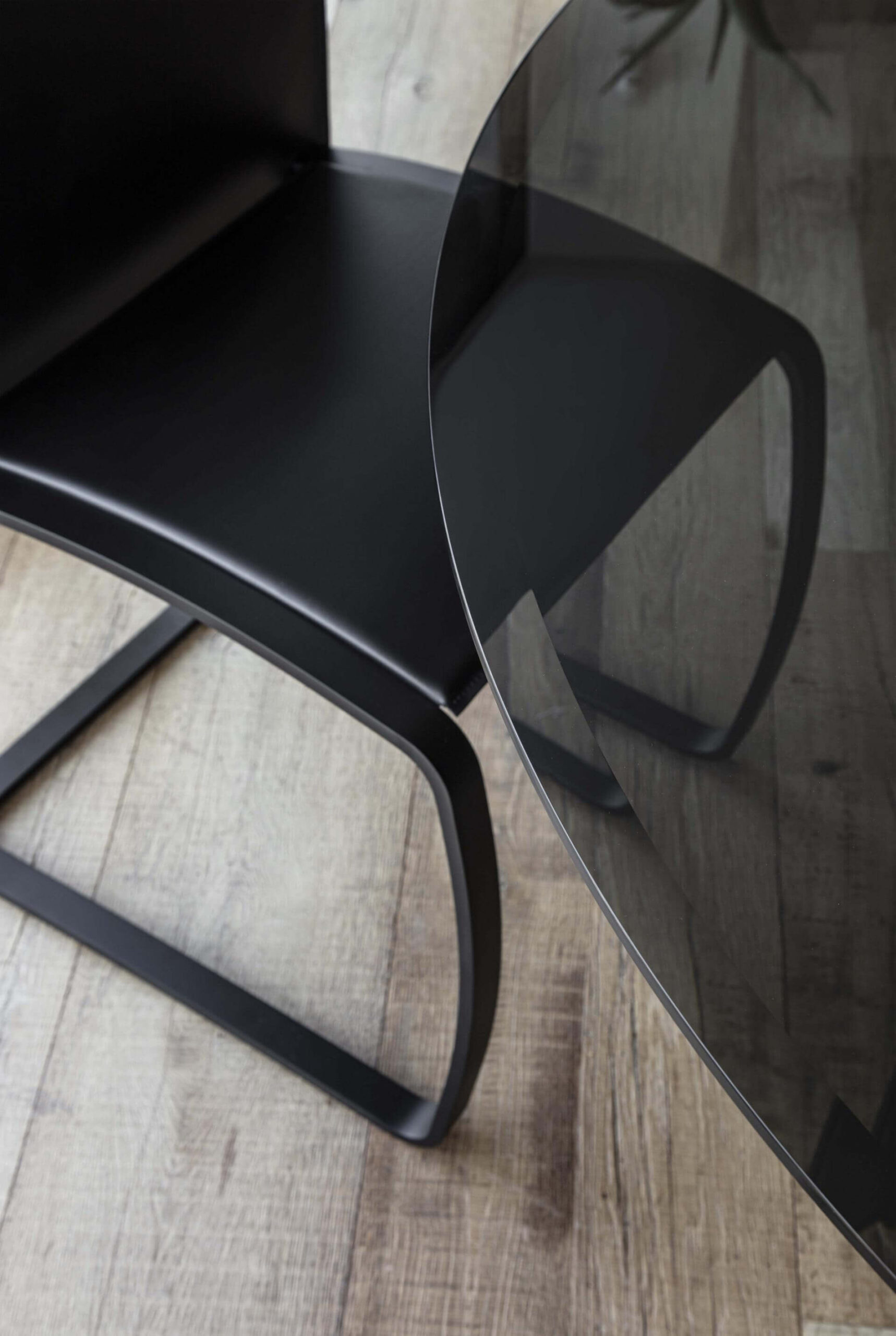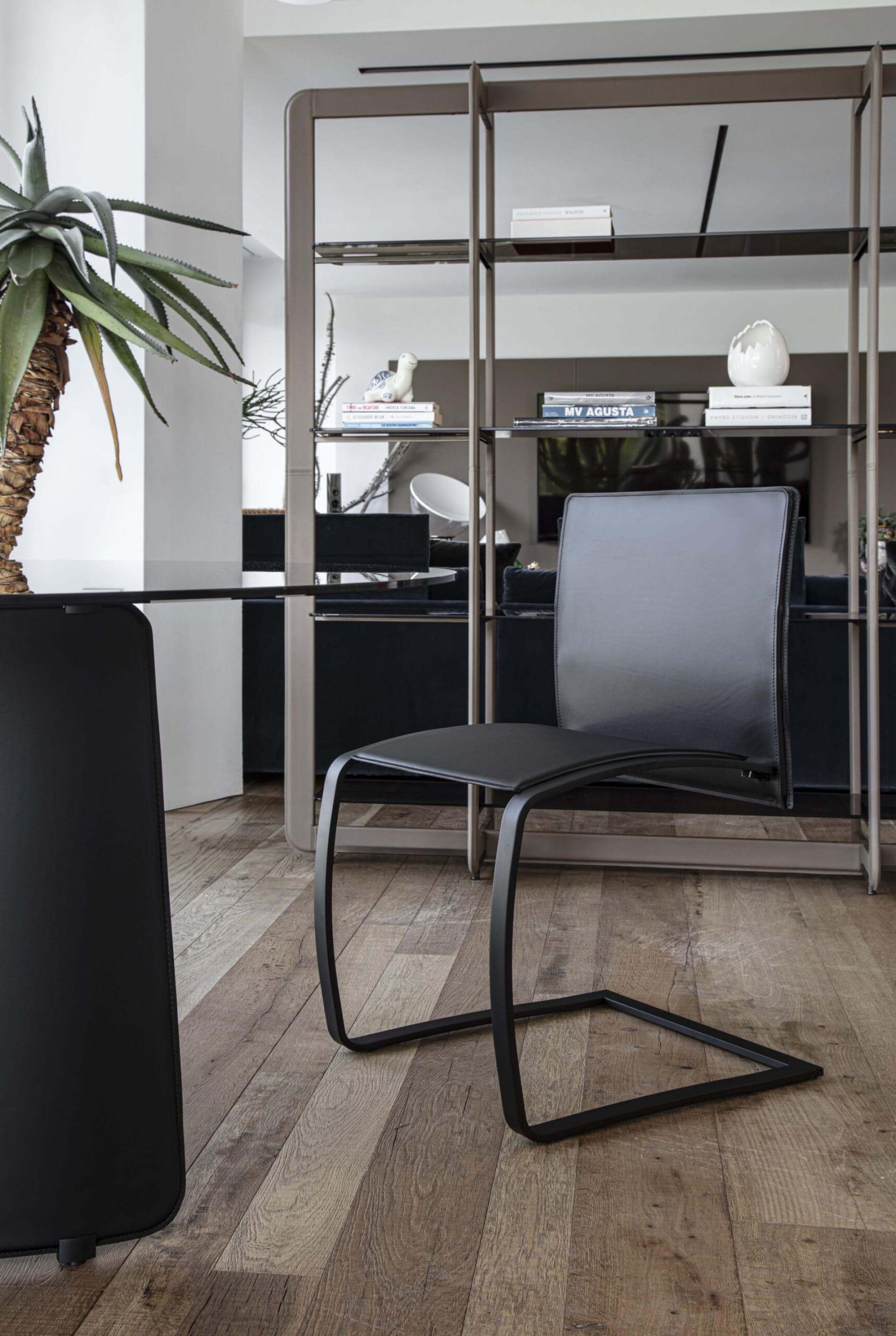 La serie Zen si presenta con una linea essenziale e di grande eleganza. Base cantilever in piatto d’acciaio a sezione rettangolare con finitura in cromo lucido o satinato; sedile e schienale rivestiti in cuoio. Disponibile con o senza braccioli.