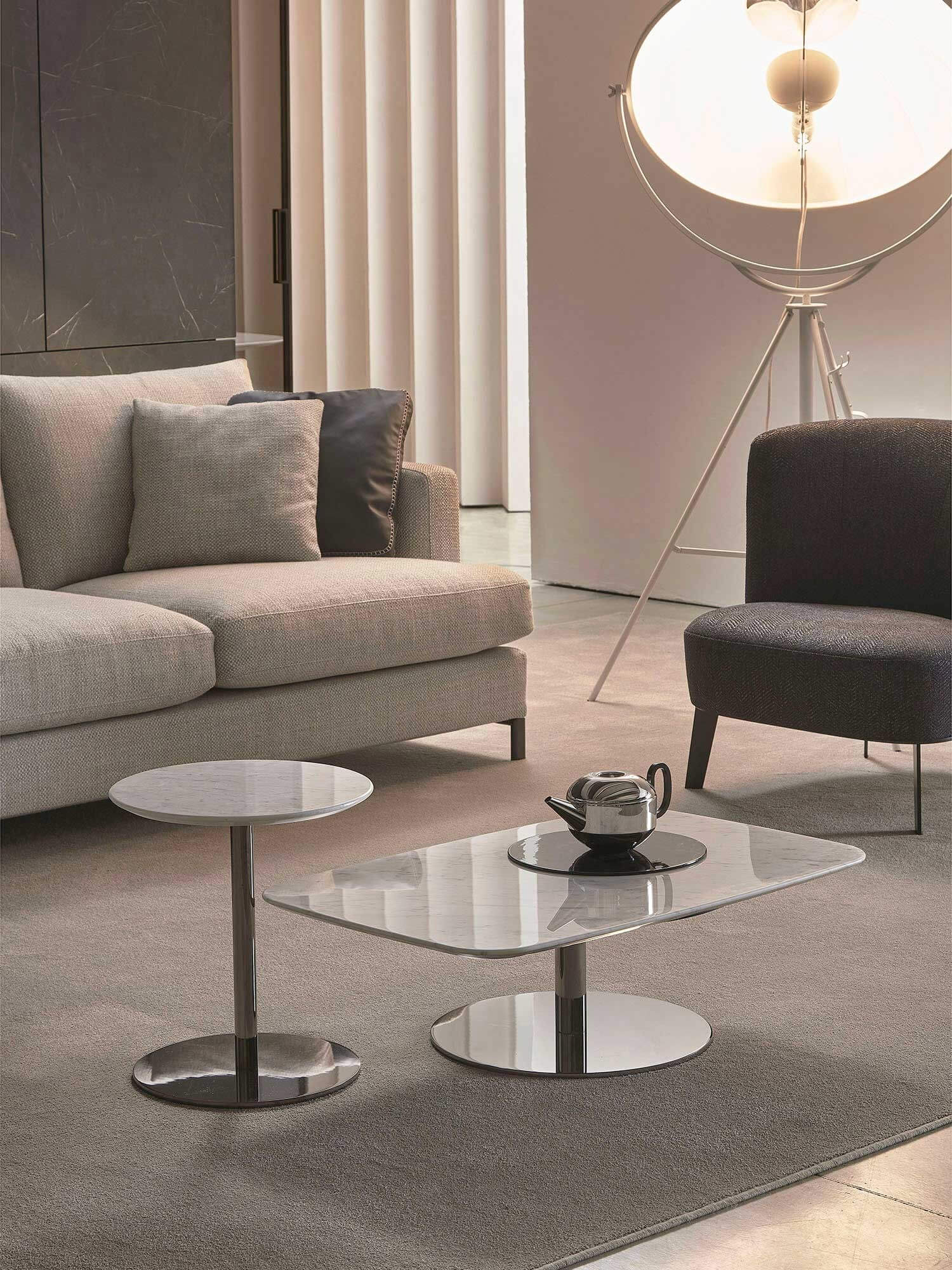 La collezione di tavoli e tavolini Break offre una vasta gamma di opzioni per adattarsi a diversi gusti e stili di arredamento. I tavoli possono essere realizzati con diversi tipi di materiali per il top, tra cui marmo, metallo, vetro, legno e grès porcellanato. Questa varietà di materiali consente di scegliere quello che meglio si adatta al proprio gusto estetico e alle esigenze pratiche.