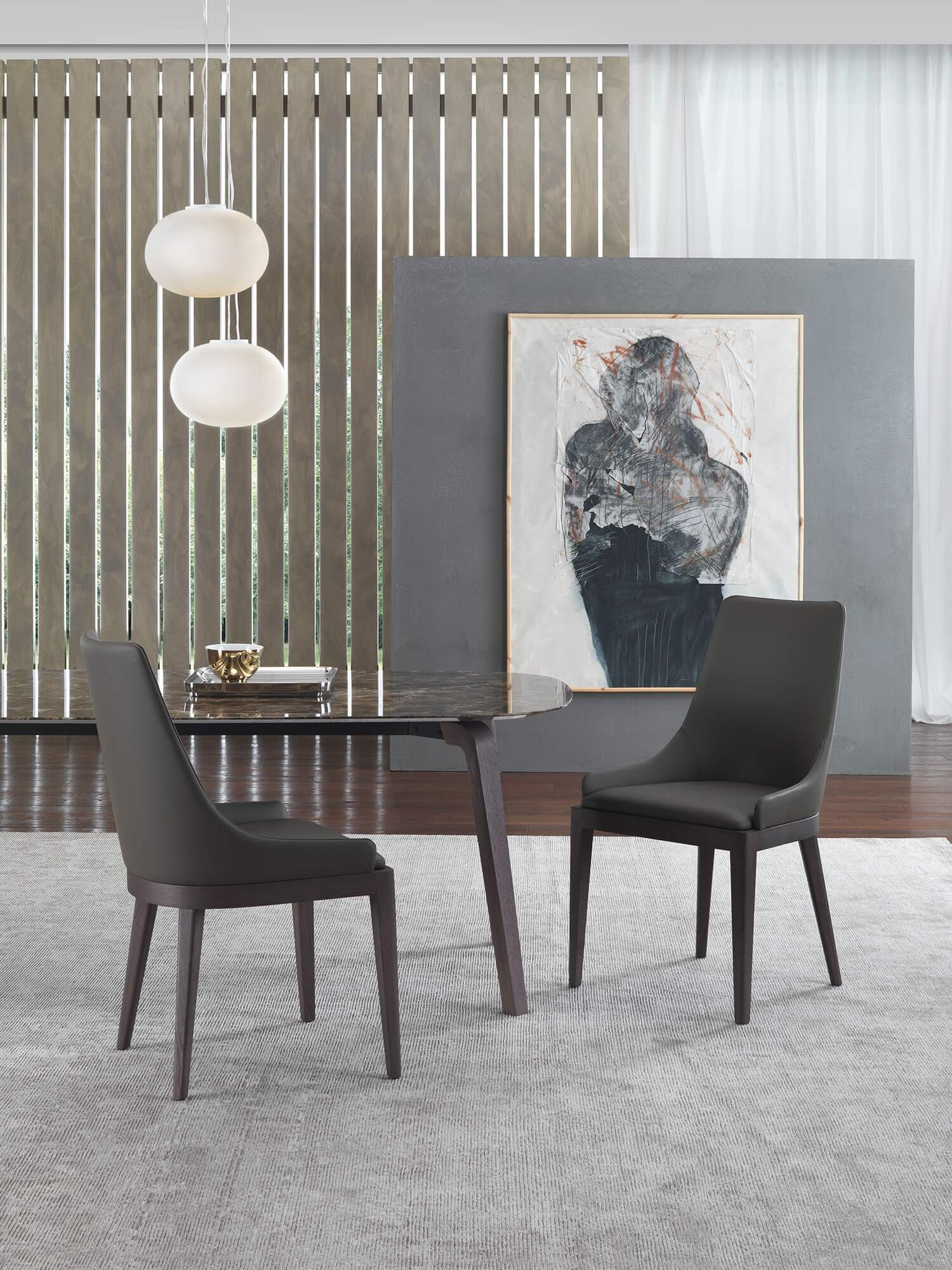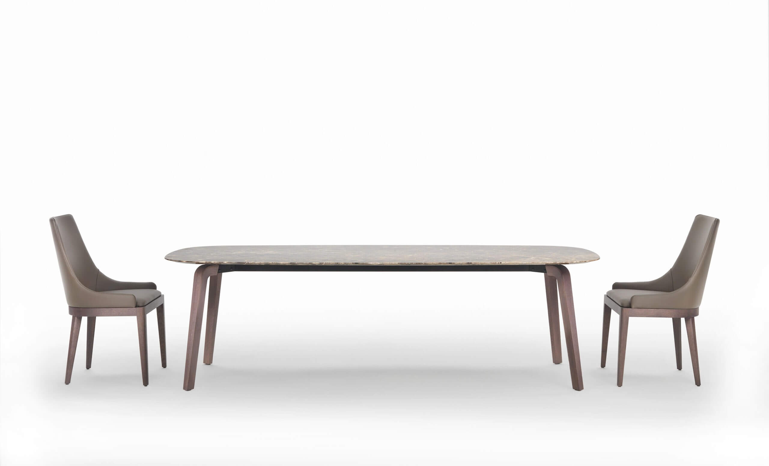 Il top rettangolare con angoli stondati conferisce un tocco di raffinata eleganza senza compromettere la funzionalità. Le finiture sono curate con estrema attenzione e riflettono un’alta qualità artigianale. La base del tavolo è realizzata in metallo rivestito in legno massello e presenta una lavorazione di precisione. Inoltre, è possibile scegliere tra diverse opzioni per il piano del tavolo, tra cui legno e marmo, offrendo una vasta selezione di finiture tra cui selezionare.